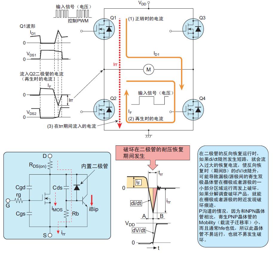 在DS端間構(gòu)成的寄生二極管運(yùn)行時(shí),由于在Flyback時(shí)功率MOSFET的寄生雙極晶體管運(yùn)行,