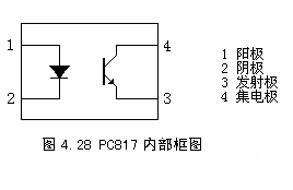 光電耦合器是以光為媒介來傳播電信號的器件。通常是把發(fā)光器(發(fā)光二極管LED)和受光器(光敏晶體管)封裝在同一管殼內(nèi)如圖4.28。