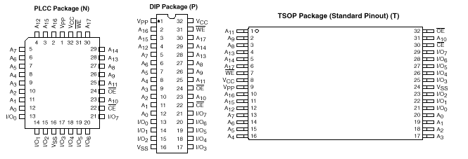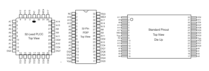 BIOS芯片管腳引腳定義圖:芯片的封裝形式有DIP、PLCC、TSOP,SSOP,SO等。但請注意,只是封裝不同而已,對于同一種型號的芯片,不論是什么封裝形式,其管腳的功能都是一一對應(yīng)的。