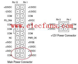 24針電源針腳定義如下:1、+3.3V;2、+3.3V;3、地線(xiàn);4、+5V;5、地線(xiàn);6、+5V;7、地線(xiàn);8、PWRGD(供電良好);9、+5V(待機(jī));10、+12V;11、+12V;12、2*12連接器偵察;13、+3.3V;14、-12V;15、地線(xiàn);16、PS-ON#(電源供應(yīng)遠(yuǎn)程開(kāi)關(guān));17、地線(xiàn);18、地線(xiàn);19、地線(xiàn);20、無(wú)連接;21、+5V;22、+5V;23、+5V;24、地線(xiàn) .