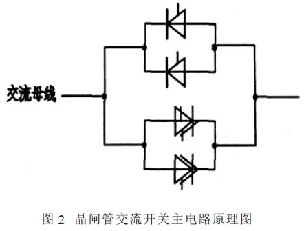 ????? 晶閘管交流電子開(kāi)關(guān)的主電路由兩個(gè)反并聯(lián)晶閘管支路構(gòu)成,每個(gè)支路分別由兩只晶閘管并聯(lián)組成, 共使用四只晶閘管( 聯(lián)接方式如圖2 所示) 。按照電氣化工程設(shè)計(jì)的要求, 晶閘管交流電子開(kāi)關(guān)安裝于牽引變壓器附近的移動(dòng)房屋內(nèi), 結(jié)合應(yīng)用工況該裝置對(duì)控制系統(tǒng)有如下要求: