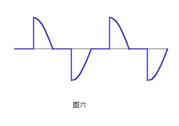 從X10調(diào)光開關(guān)本身來說,如果它向把燈的亮度調(diào)為50%,那么,它會用可控硅"切掉"正弦波的前半部分(如圖六所示)。如果它想讓燈更暗一些,它就會把正弦波"切"的更多(如圖七所示)。