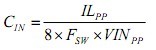 計(jì)算輸入電容CIN (C3、C4、C5并聯(lián)),式中VINPP是輸入電壓紋波的峰峰值,本應(yīng)用中取值為輸入電壓的0.4%。將已知參數(shù)代入等式,可得:CIN = 22.3mF,近似用三個(gè)10mF、25V陶瓷電容(L1左側(cè))替代。反饋補(bǔ)償