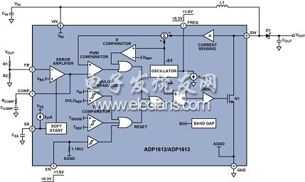 可調(diào)軟啟動電路防止發(fā)生浪涌電流——確保安全、可預(yù)測的啟動條件。ADP1612/ADP1613 在開關(guān)狀態(tài)下的功耗為2.2 mA,在非開關(guān)狀態(tài)下的功耗為700 μA,在關(guān)斷模式下的功耗為 10 nA。這些器件采用8引腳 MSOP封裝,額定溫度范圍為–40°C 至+85℃,千片訂量報價為1.50/1.20 美元/片。
