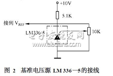 設(shè)計中選用了LM336—5型隱埋式齊納二極管,它具有價格低、使用方便的特點,其接線如圖2: