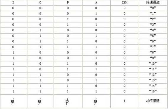 圖5 CD4067 的引腳功能表 4 CD4067 真值表