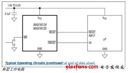 MAX16122-MAX16125與單電源監(jiān)視器監(jiān)控一個或兩個按鈕的按鈕控制器和產生一個硬復位信號,如果推按鈕,并設置延遲舉行。該設備使很容易地“隱藏”在現(xiàn)有的按鈕硬如軟電源開關,復位功能。這些器件工作在1.6V至5.5V,在3V靜態(tài)電流消耗僅5μA。 MAX16122-MAX16125具有引腳可編程或電阻可調的設置延遲。SEL引腳連接到GND,五CC,或懸空,選擇不同的設置延遲(根據部分后綴,見表1A)或連接SEL外部的電阻至GND設置設置延遲(E后綴只,表1b)。MAX16124/MAX16125有一個手動復位輸入(低電平有效MR),復位輸出(低電平有效復位),軟復位輸出(主動低SRESET的),它反映了輸入狀態(tài)。MAX16122/MAX16123有兩個相同的手動復位輸入(低電平有效MR1的和積極的低MR2的)和一個復位輸出(低電平有效的復位)??辜夥迕}沖塊連接到每個輸入與固定的抗尖峰脈沖周期為20ms(T添加延時的下降沿DB)。 MAX16122-MAX16125的功能比較,監(jiān)控輸入電源電壓。各種工廠調整閾值選項適應不同的電源電壓和公差,無需外部組件。出廠設置的復位閾值范圍從1.58V到4.63V監(jiān)視5V,3.3V,2.5V,1.8V電源。 MAX16122-MAX16125提供一個微小的0.86毫米的x1.27毫米,6焊球WLP封裝,并指定在汽車溫度范圍(-40℃至+125°C)。